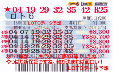 | 04 10 17 29 32 36 | 6個 | 3等当選! |