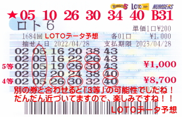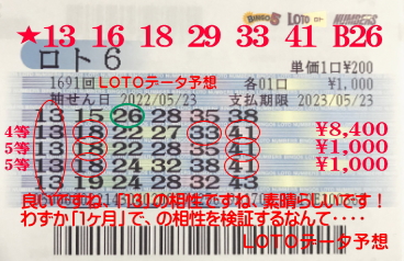 | 04 05 13 16 22 | 4個 | 4等当選! |