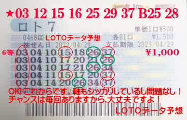| 03 04 29 + B | 3個+B | 6等当選! |