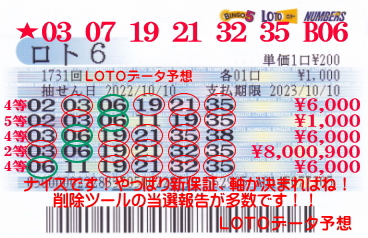 | 03 15 22 + B | 3個+B | 6等当選! |