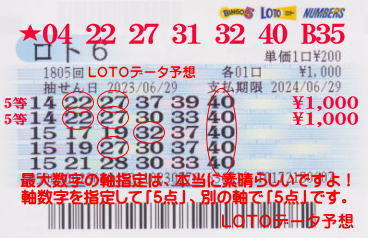 | 04 05 13 16 22 | 4個 | 4等当選! |