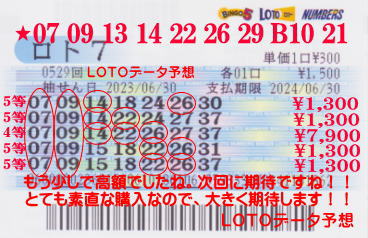 | 07 14 28 + B | 3個+B | 6等当選! |