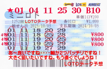 | 10 19 21 31 + B | 4個+B | 2等当選! |