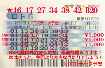 | 07 28 32 42 43 | 5個 | 3等当選! |