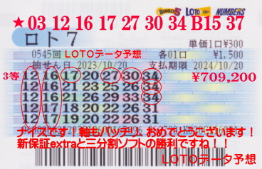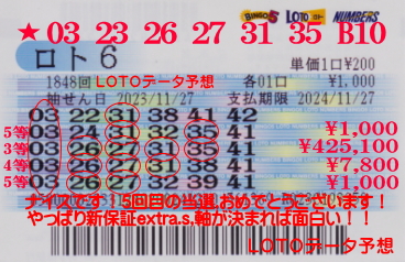 | 03 26 27 31 35 | 5個 | 3等当選! |