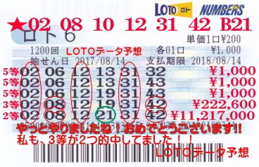 | 06 08 10 | 3個 | 5等当選! |