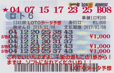 | 03 06 23 25 31 × 2 | 5個 | 4等当選! |