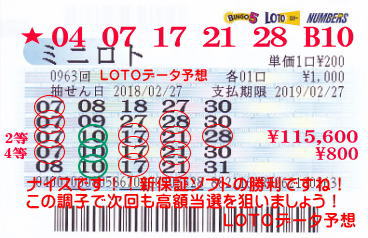 | 13 26 37 + B | 3個+B | 6等当選! |
